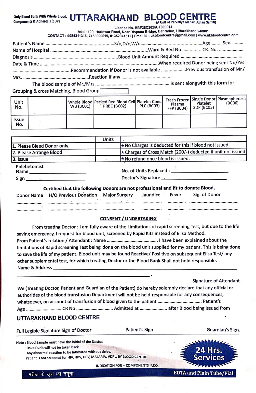 Single Donor Platelets (SDP) for critical patients with low platelet counts in Uttarakhand.